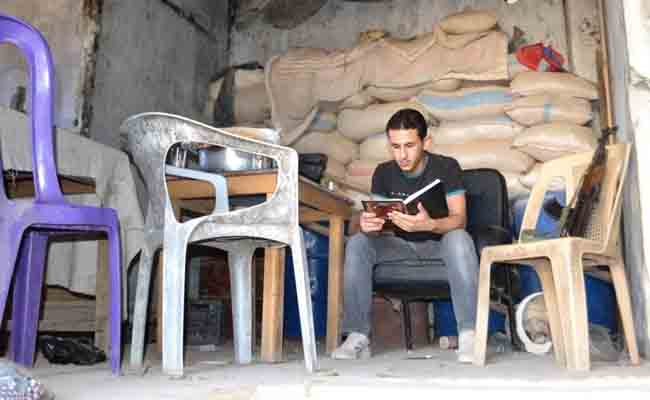 ওমর আবুআনাস এমনই একজন পড়ুয়া। বয়স ২০ পেরিয়েছে। সে স্কুলের পাঠ শেষ করতে পেরেছে। কিন্তু তাকে যুদ্ধে যেতে হয়। আক্রমণের সম্মুখে থাকতে হয়। সে যখন যুদ্ধে যায় তখন প্রচুর বই নিয়ে যায় সঙ্গে করে। যুদ্ধের অন্ধকার, খোলাটে সময়গুলোতে একহাতে বন্দুক আর একহাতে বই থাকে তার।