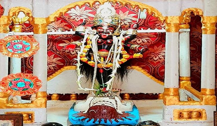 দেবী কালিকার বিগ্রহটি কষ্টিপাথরের তৈরি। মাতৃ বিগ্রহের উচ্চতা দেড় থেকে দুই ফুটের মতো। দেবী চতুর্ভূজা দক্ষিণা কালী রূপেই বিরাজিতা। দেবী বামদিকে দুই করে খড়্গ ও মুণ্ড এবং ডান দিকের দুই করে বরমুদ্রা ও অভয়মুদ্রা ধারণ করে শিবের বুকে দক্ষিণ চারণ স্থাপিত করে দণ্ডায়মানা। দেবী কালিকার সারা গায়ে সোনার রূপোর অলংকার পরানো থাকে। মায়ের পায়ের সামনে রাখা থাকে পাঁচটি নরমুণ্ড। কালীমূর্তি একেবারে সাবেকি ধরনের। কোনও বস্ত্র পরানো হয় না। তিনি তাঁর স্বপ্নাদিষ্ট দিগম্বরী রূপটিতেই বিরাজ করেন। প্রায় দু’ফুট উচ্চতার দেবীমূর্তি কারুকার্যময় কাঠের সিংহাসনের উপর অধিষ্ঠিত থাকে। কথিত আছে, মন্দিরের দেবী মূর্তি পুকুরে পাওয়া গিয়েছিল। তারপর সেই পুকুর বুজিয়েই দেবীর মন্দির নির্মিত হয়েছে। দীপান্বিতা কালীপুজোয় আজও অসংখ্য ভক্তসমাগম হয়। পাশাপাশি জগদ্ধাত্রী পুজোতেও এখানে জাঁকজমকপূর্নভাবে পুজো হয়। জগদ্ধাত্রী পুজোর নবমীর দিন মূল পুজো আয়োজিত হয়। পুজোয় মাতৃ আরাধনায় যেমন মা জগদ্ধাত্রীকে পুজো করা হয়, তেমনই পূজিতা হন কালী ও দূর্গা। বাংলার ১১৭৮ সনে বা ইংরেজির ১৭৭১ সালে জগদ্ধাত্রী পুজোর অষ্টমীতে এই কালীবাড়ি প্রতিষ্ঠিত হয়েছিল। সেই সময় থেকেই দেবী কালিকার পুজো হয়ে আসছে। মন্দির তথা পুজোর বয়স আড়াইশো পেরিয়ে গিয়েছে। মন্দিরের সেবায়েত বন্দ্যোপাধ্যায় পরিবার। তাঁদের হাতেই পুজোর সূচনা হয়েছিল।