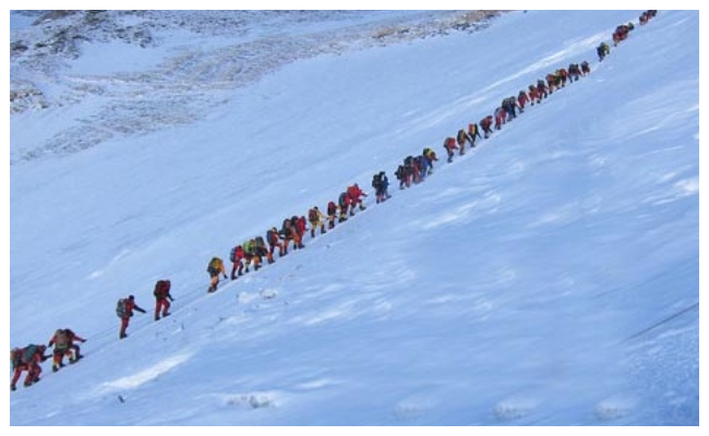 বিশ্বের উচ্চতম শৃঙ্গ মাউন্ট এভারেস্ট। ছোট থেকে ভূগোল বইয়ের পাতায় এইসব পড়েই বড় হয়েছি আমরা। সেই এলাকার আবহাওয়া সম্পর্কেও সকলের কমবেশি ধারণা রয়েছে। এই এলাকায় তুষার ঝড় থেকে শুরু হয়ে কি কি না হয়। পৃথিবীর বিপদসংকুল স্থানগুলির মধ্যে এই জায়গাটি অন্যতম। তাই আজও নবীন পর্বতারোহীরা স্বপ্ন দেখে এভারেস্টের শৃঙ্গ ছোঁয়ার। সেই স্বপ্ন পূরণ করার উদ্দেশ্যেই প্রতিবছর প্রচুর পর্বতারোহী ভিড় জমান এভারেস্টের পথে। সেই পথেই সম্প্রতি ঘটে গেছে একটি দুর্ঘটনা। সম্প্রতি এভারেস্টের শৃঙ্গে পৌঁছানোর শেষ সীমায় জমায়েত হতে দেখা যায় প্রায় শ'খানেক মানুষকে। শেষ সীমার সেই অঞ্চলকে এলাকার 'মৃত্যু অঞ্চল' বলা হয়।