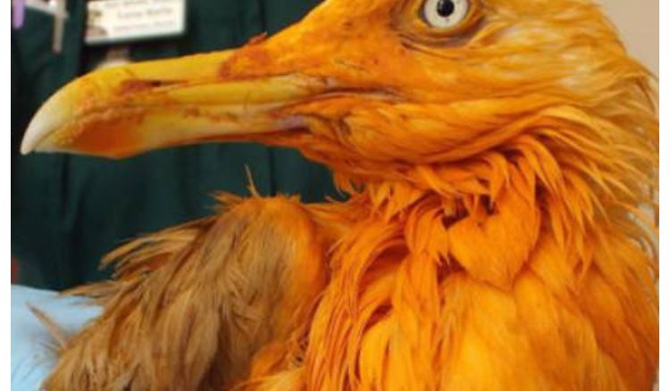 অন্য একটি গল্পে বলা হয়, একটি সি গাল একটি ফুড ফ্যাক্টরির পাশে থাকা ভ্যাটের থেকে মাংসের ঝোলের মধ্যে পড়ে যায় এবং তার ফলে তার রং হয়ে যায় ডিপ হলুদ বা হালকা কমলা। জানা গেছে, একটি খাবার তৈরির ফ্যাক্টরির একটি কন্টেনার থেকে মাংস চুরি করতে গিয়েই অন্য একটি কন্টেনারে থাকা ঝোলের মধ্যে পড়ে যায়। তাকে ভলেন্টিয়ারের সাহায্যে নিকটবর্তী হাসপাতালে নিয়ে গেলে তার গা থেকে অনেক কষ্টের পর দূর করা যায় সেই ঝোলের রং। হাসপাতাল সূত্রের খবর, হাসপাতালে নিয়ে যাওয়ার ফলে তার ধবধবে সাদা পালক থেকে ঝোলের রং দূর করা গেলেও ঝোলের স্মেল দূর করা সম্ভব হয়ে ওঠেনি। পাখিটিকে উদ্ধার জানান, ফুড ফ্যাক্টরির পাশে থাকা একটি ভ্যাট থেকে মাংস চুরি করতে গেছিলো এই পাখি। তখনই কোনোভাবে বেসামাল হয়ে ভ্যাটেই পড়ে যায়। সেখান থেকেই তাকে উদ্ধার করে হাসপাতালে নিয়ে যায় কিছু ভলেন্টিয়ার।